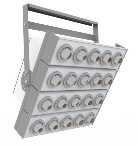Светильник светодиодный ПСО-03-850-01,02-УХЛ1 модульной конструкции, используется взамен светильников с лампами ДНАТ-1000, предназначен для установки на осветительных вышках компрессорных станций, предприятий атомной промышленности, а так же в решении задач в освещении большой площади (стадионы и т.д.).